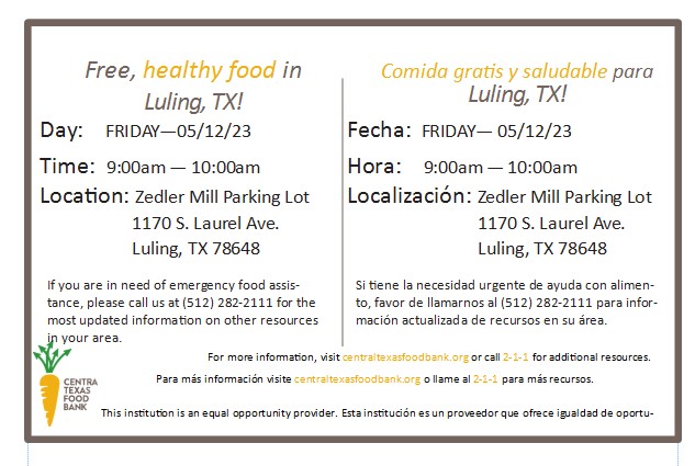 [ARCHIVED] Free, healthy food in Luling, TX on Friday, May 12, 2023!!